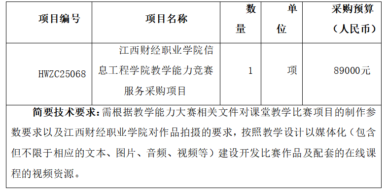 1.项目名称:江西财经职业学院信息工程学院教学能力竞赛服务采购项目