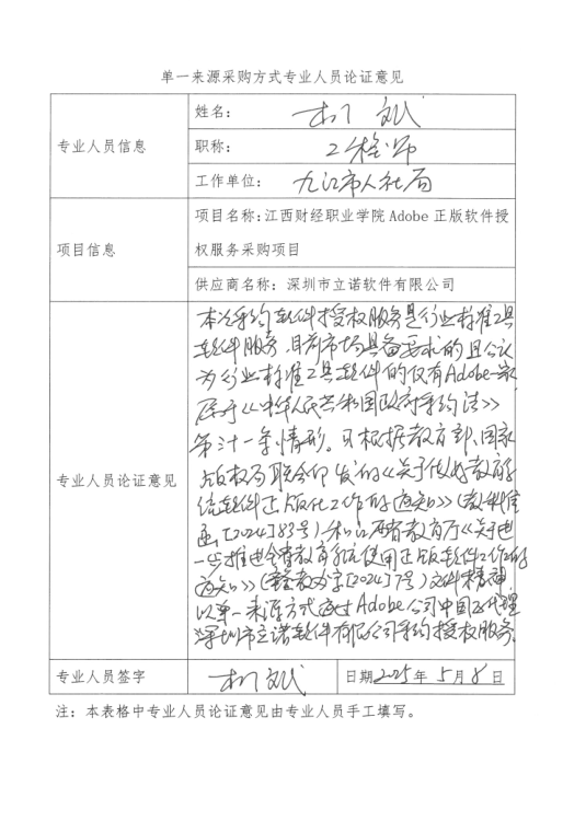 附:单一来源采购方式专业人员论证意见表