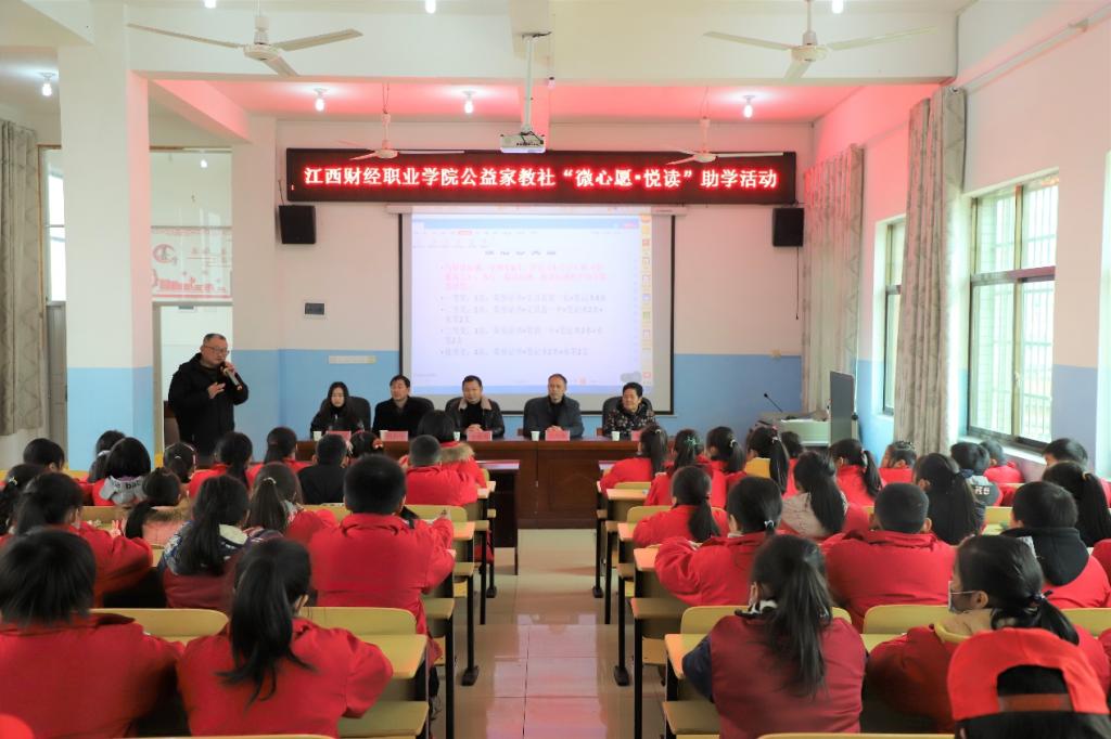 2020年12月18日,江西财经职业学院公益家教社19名志愿者在指导老师柯新华教授的带领下,赴武宁县鲁溪镇开展 “微心愿?悦读”助学活动。鲁溪镇党委、政府对此次活动给予了高度重视,副镇长余著海、镇关工委执行主任黎丽威、鲁溪中心小学校长刘风华等领导出席了本次活动。