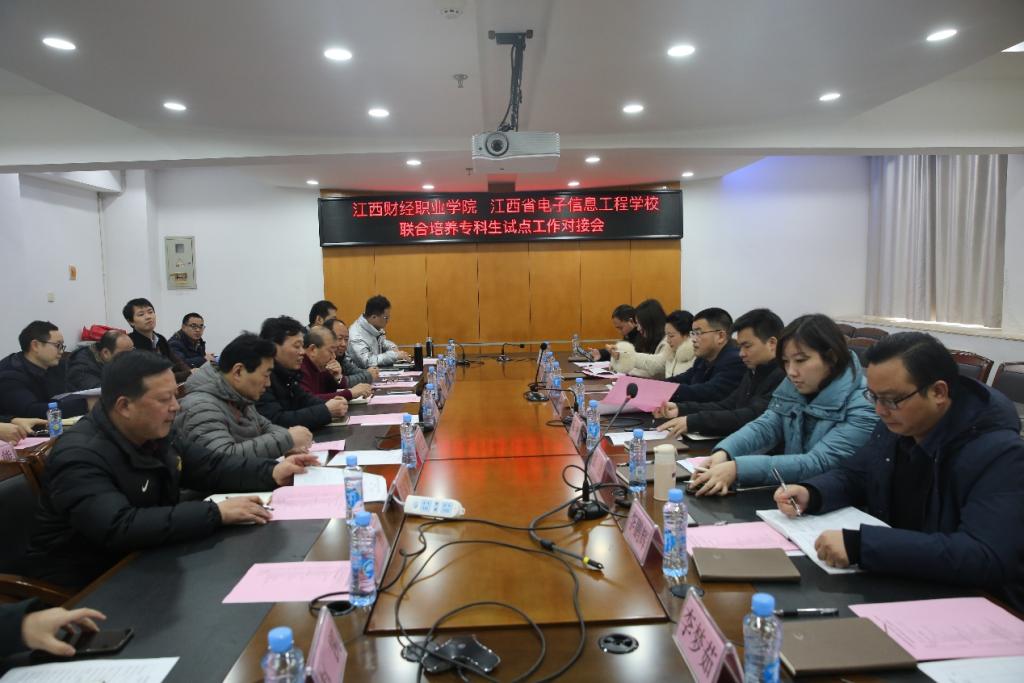 12月23日,为贯彻落实江西省教育厅《关于做好职业院校联合专科层次学生试点工作的通知》(赣教职成字【2019】34号)要求,全面推进职业院校联合培养专科层次学生试点工作,江西省电子信息工程学校副校长陈头喜携相关职能部门负责人来我校对接工作。