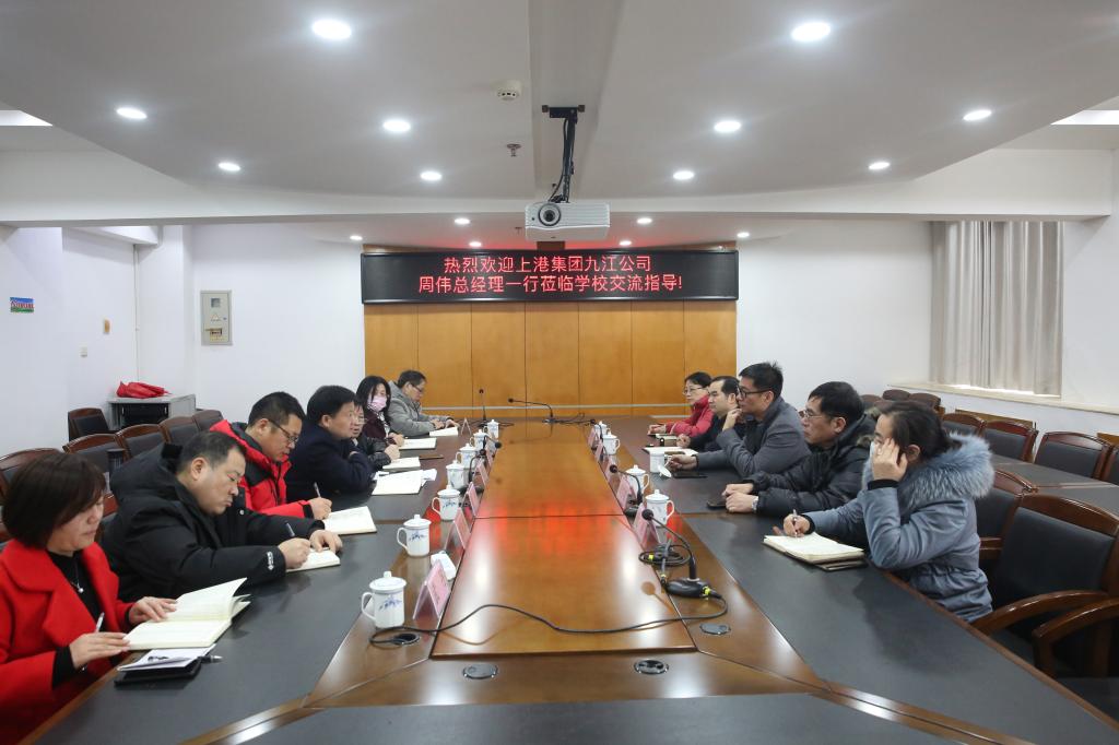 2021年1月6日上午,上港集团九江公司周伟总经理等一行五位高管到访我校,校党委副书记、校长刘彪文在综合楼1201室接待并进行了交流。