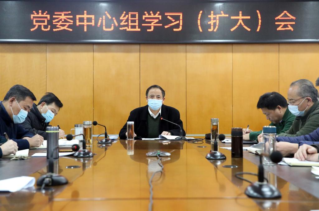 1月14日,学校在综合楼1201会议室召开党委中心组学习(扩大)会,传达学习习近平总书记系列重要讲话精神,开展以“学习党章、遵从党章、维护党章”为主题的专题研讨。校领导班子成员出席,各部门负责人参加会议,南昌校区通过同步视频参会?;嵋橛尚5澄榧橇只鹌街鞒?。