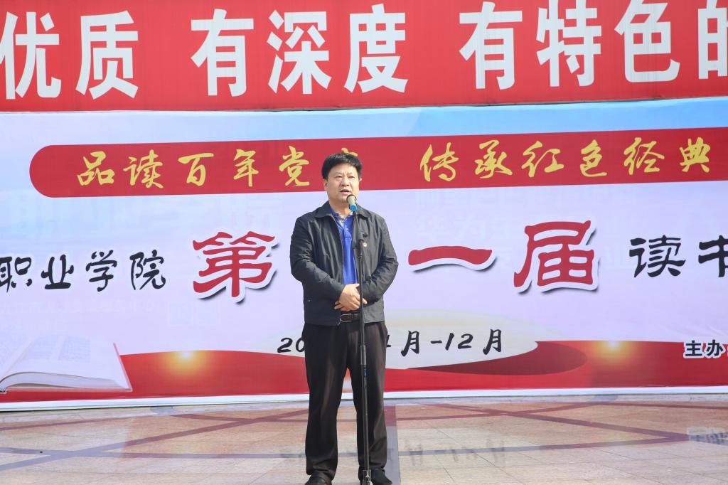 校长刘彪文在开幕式上发表了热情洋溢的致辞,他强调:同学们要树立读书的三个意识:第一,明白为什么要读书。充分明白读书的“大道理”和“小道理”,既要做到如“大道理”般为中华之崛起而读书,也要做到如“小道理”般知书而达理。第二,明白怎么样读书。每个人都有读书,有的人学有所获,有的人空无所获,关键在态度方法,我们读书要端正态度,力求“四戒”,“戒满”“戒骄”“戒惰”“戒懒”。第三,明白读什么样的书。理想的书籍,犹如智慧的钥匙,能催使我们不断进步。百年党史,就是一部蕴含着崇高理想的智慧之书。希望同学们在品读百年党史、传承红色经典中快乐开启本届读书文化节系列活动,在读书中提升境界和格局,努力成为有素质、有能力、有思想、有品德、成为社会需求和社会期待的高品质人才,将读书融入到自己的理想、生命、生活、追求,融入到社会需求、国家需求中去。