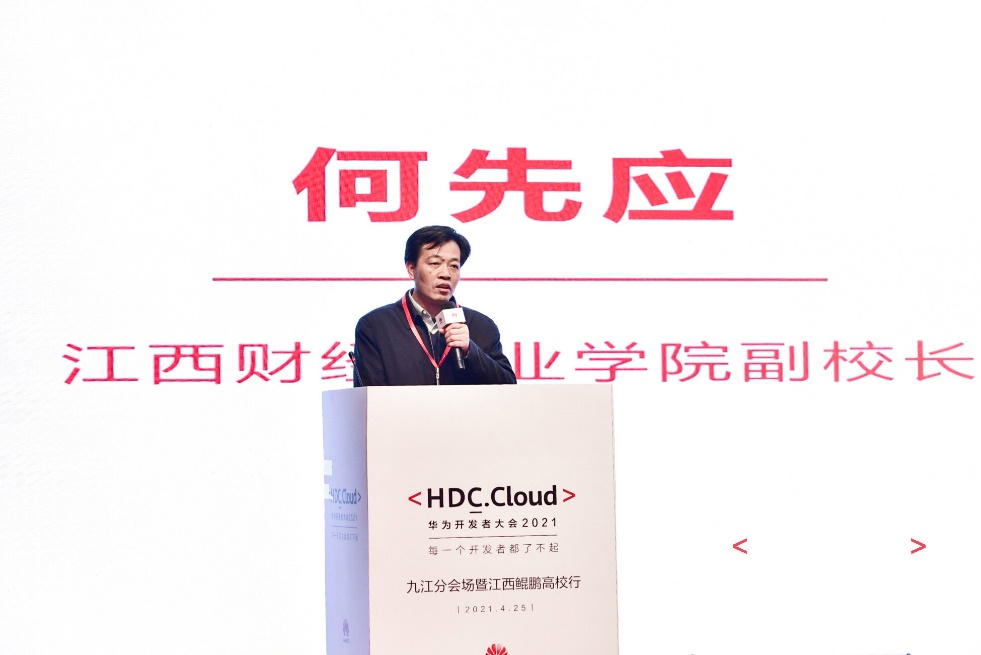 何先应在致辞中表示,政校企联姻,共创未来。学校高度重视产教融合,今年3月18日,在华为(江西)新一代信息技术应用创新中心上线发布仪式上,在各级领导的见证下,江西财经职业学院联合鄱阳湖生态科技城、华为公司打造的“鲲鹏产业学院”正式成立并挂牌。这也标志着江西财经职业学院基于鲲鹏的深度产教融合、政校企合作成果正式落地。由衷希望在座的老师、同学们此次能够充分了解华为开发者大会的理念和精神,能够对鲲鹏生态有更进一步认知,在此基础上为江西区域的数字经济发展培养出更多的优秀人才。