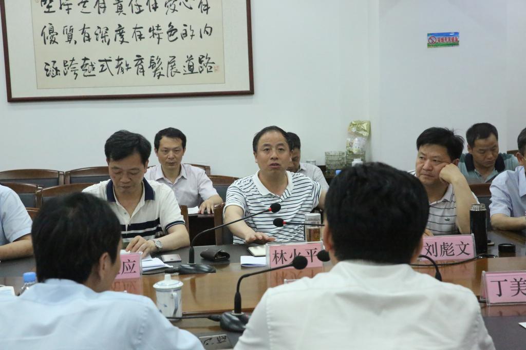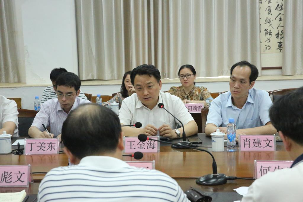 5月14日,江西财经大学现代经济管理学院院长王金海,党委书记肖建文,副院长丁美东、顾耀峰、吴小刚等一行12人来到我校调研交流,校党委书记林火平、校长刘彪文和在家的班子成员热情接待了王金海院长一行。