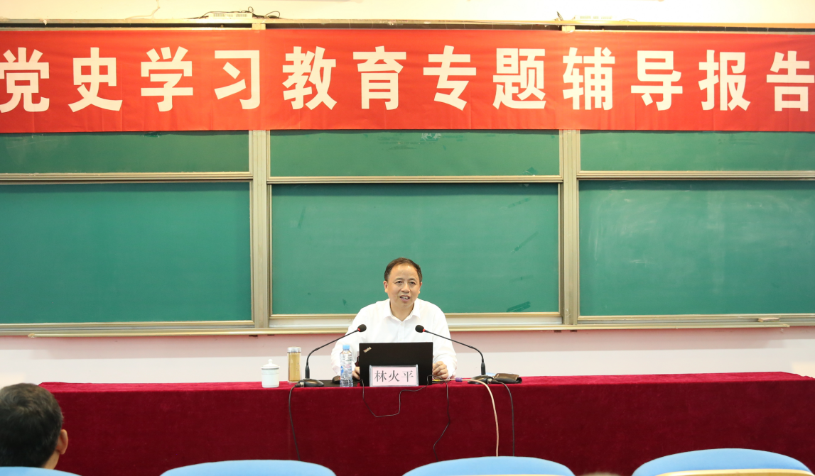 为深入学习贯彻习近平总书记在全国党史学习教育动员大会上重要讲话精神,扎实推进我校党史学习教育开展,5月20日下午,校党委书记林火平教授在七楼报告厅为全体党员作党史学习教育专题辅导报告。在家领导班子成员及全体教职工党员聆听了报告,南昌校区通过同步视频参加。