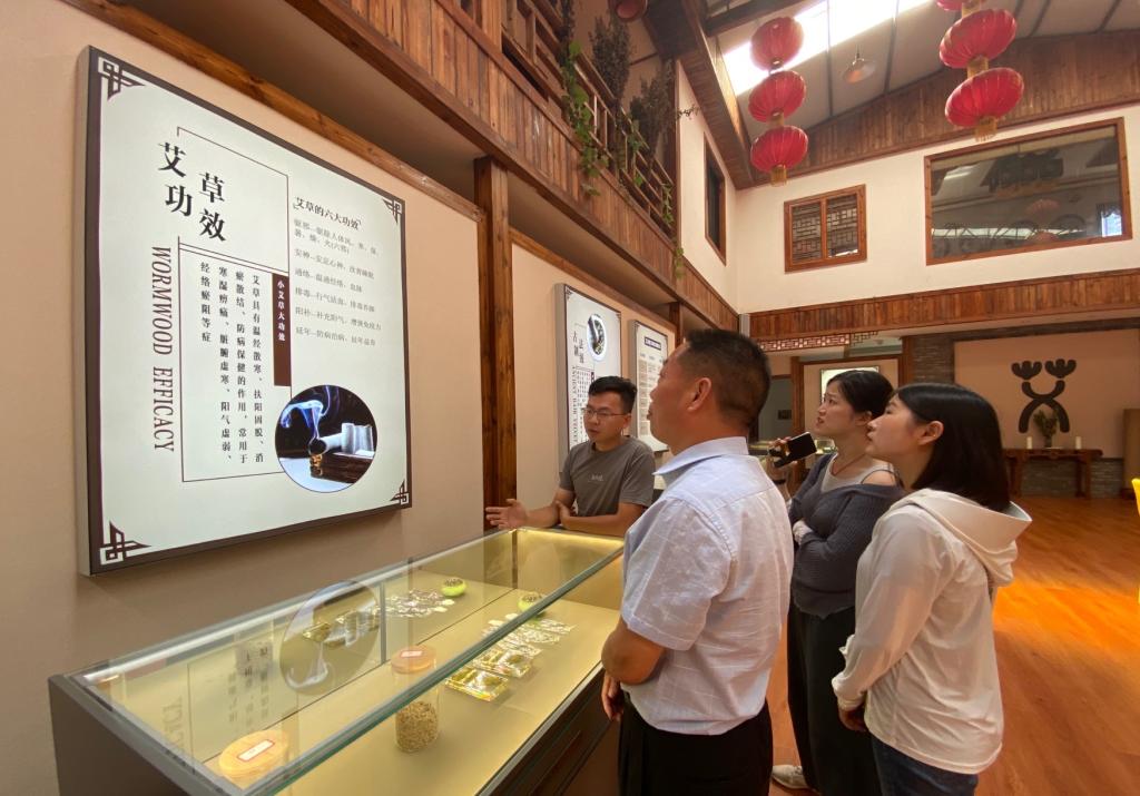 在钱万里总经理陪同下,师生参观艾草研究中心、艾草文化博物馆、艾灸体验中心、加工制造体验中心等场所,了解到艾草从种植到深加工个环节,深深感受到小小艾草的无限可能。钱总经理认为,艾草产业是方兴未艾的绿色产业,对优化产业结构、改善生态环境、转变经济发展方式大有裨益,尤其是随着人们对绿色医疗、中医养生保健需求的不断增强,艾草在医疗、保健、美容等方面的作用得到了社会广泛认同,艾草产业已成为朝阳产业。
