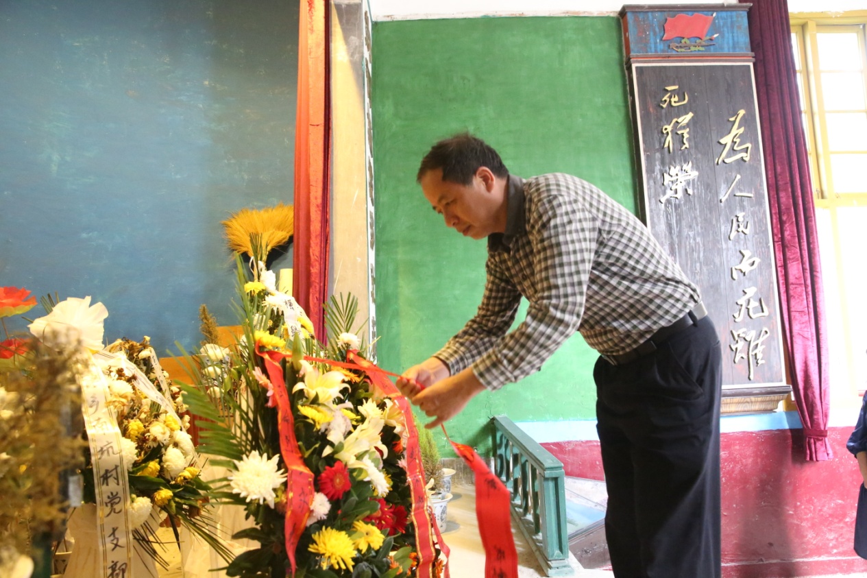 在烈士灵堂前,全体党员怀着无比崇敬的心情向烈士默哀致敬,并向革命烈士敬献了花篮。