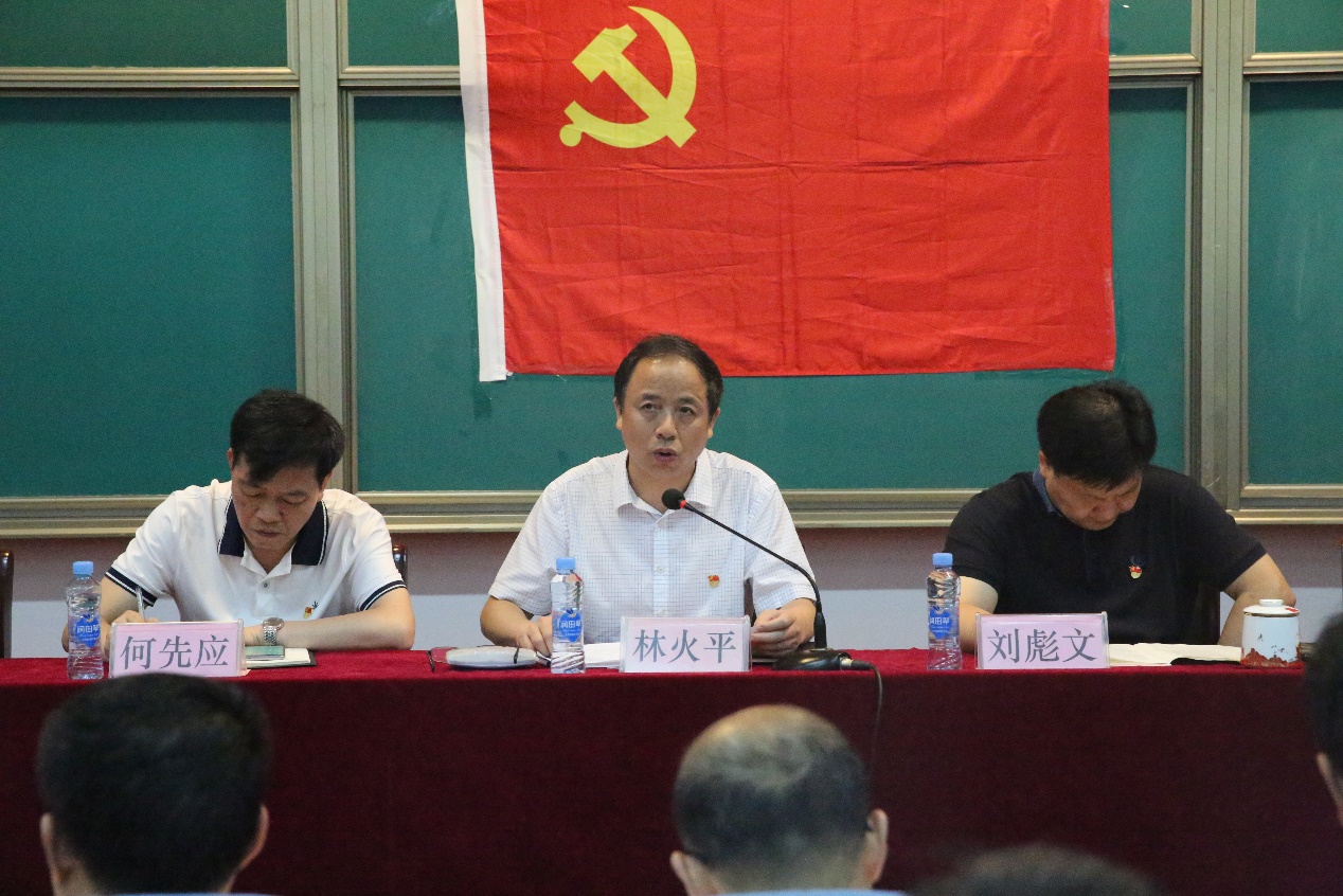 林火平号召全体党员同志紧紧团结在以习近平同志为核心的党中央周围,以时不我待的干劲,以攻坚克难的拼劲,以水滴石穿的韧劲,以善作善成的巧劲,奋力书写学?!笆奈濉狈⒄沟男缕?。