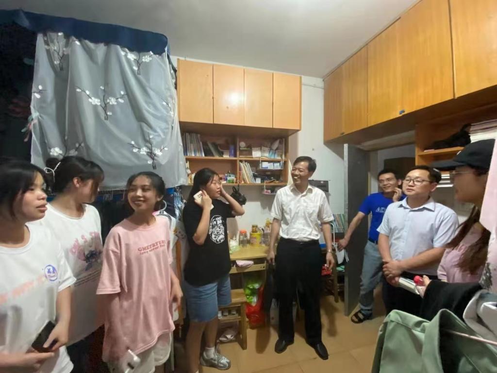 主题班会结束后,何先应来到学生宿舍,和同学们进行暖心交谈。一是针对全班学生有20多名来自江西省外的实际情况,他细致地询问同学们对九江的气候环境是否适应,在学校的学习生活是否习惯,暑期回家的火车票是否已顺利预订等;二是针对学校后勤保障方面,详细了解同学们对宿舍管理、食堂饭菜质量和价格等方面的意见建议;三是针对同学们在学习生活中遇到的困惑,耐心细致为他们答疑解惑,并且语重心长地提出鼓励。何先应的亲切关怀,让同学们倍感暖心,同学们也踊跃地分享自己的想法,和他侃侃而谈,畅所欲言。