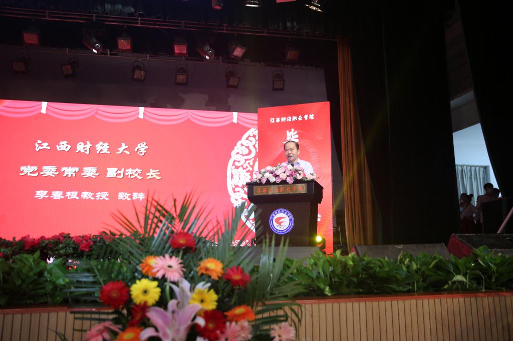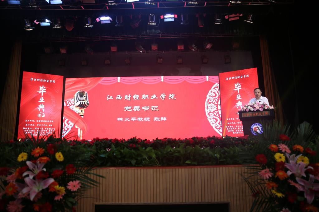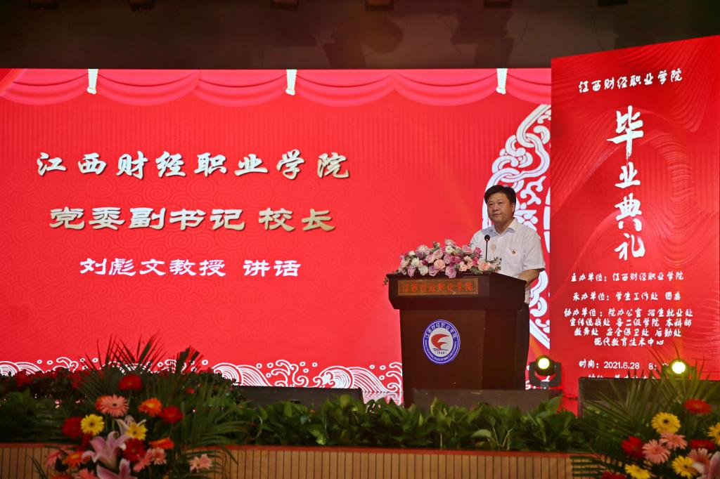 6月28日上午8:30,江西财经职业学院暨江西财经大学职教本科班2021届毕业典礼以“线上+线下”的形式在英才交流中心隆重举行。校党委书记林火平,党委副书记、校长刘彪文等全体校领导;江西财经大学党委常委、副校长李春根,教务处处长廖国琼,会计学院院长周冬华;杰出校友代表姚国兴、汪平;校各院部负责人、教职工以及在校毕业生代表共六百余人出席了本次典礼活动,线上参与人员约3.6万。