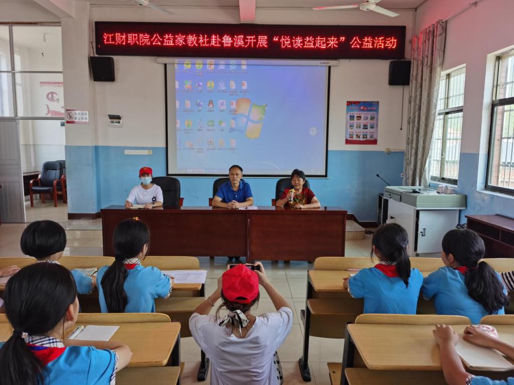 99公益日,“悦读益起来”。2021年9月9日江西财经职业学院3名教师志愿者和公益家教社10名学生志愿者赴武宁县鲁溪中心小学开展“悦读益起来”公益活动。