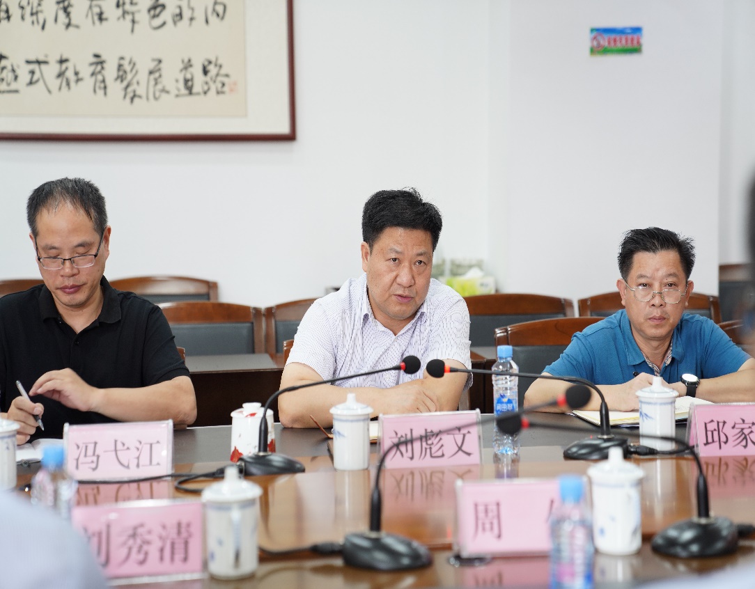 刘彪文对周伟一行的到来表示热烈欢迎,介绍了学校目前发展情况、新校区建设进度以及下一步发展的规划布局等情况,希望进一步深化与企业的合作,在干部交流、教师顶岗、学生实习等方面取得新的突破。