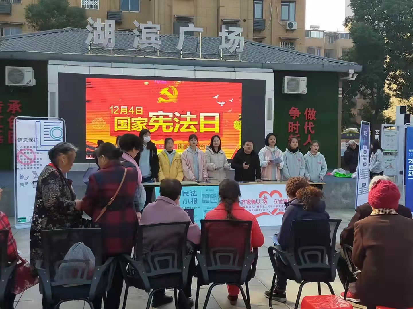 12月4日,第八个国家宪法宣传日,为深入学习党的十九届六中全会精神,贯彻习近平法治思想,江西财经职业学院马克思主义学院组织师生深入湖滨小区进行法治宣传活动,提升社区居民的法治意识。