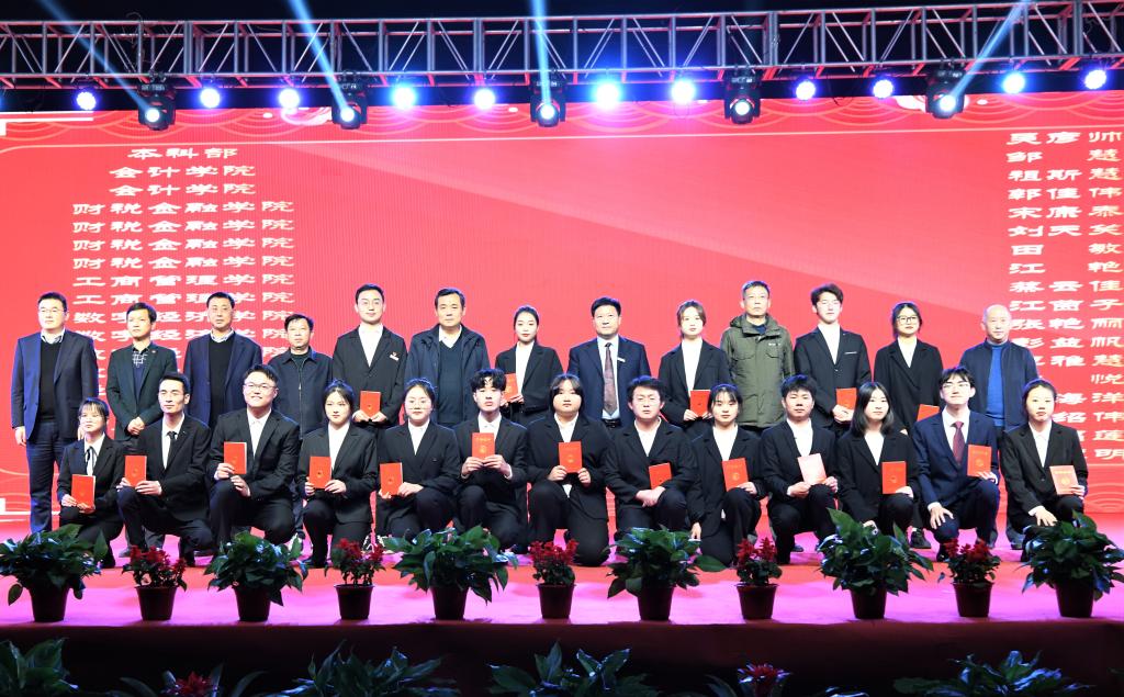 刘超教授宣读了《江西财经职业学院关于表彰2022届第一批优秀毕业生的决定》,到场领导嘉宾为毕业生代表颁发了优秀毕业生荣誉证书。
