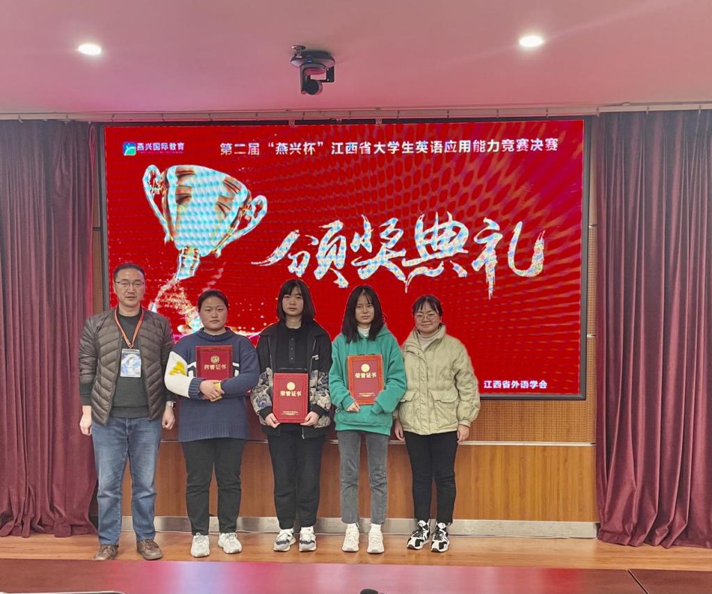 12月12日,由江西省教育厅主办的第二届“燕兴杯”江西省大学生英语应用能力竞赛决赛在江西财经大学举行。在杨蓓、白杨两位老师的精心指导下,经过激烈的角逐,我校3名同学分别获得二、三等奖,获奖人数在全省排前列。其中,19会计4班陈娅楠荣获专科组二等奖,19商英1班万艳辉、19商英3班何盈盈荣获专科组三等奖。