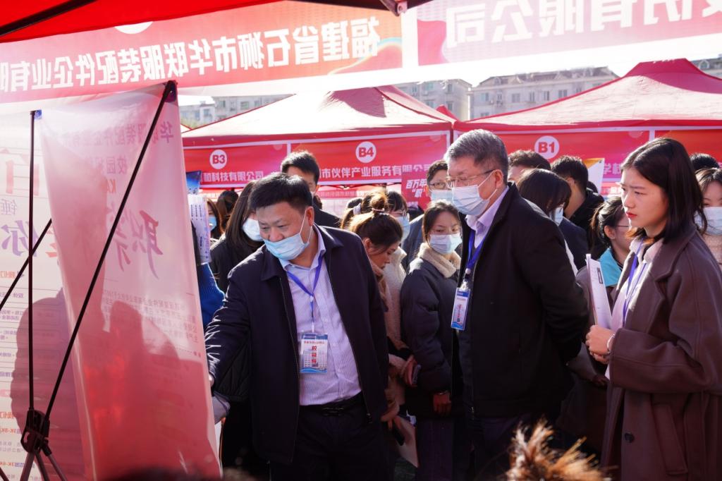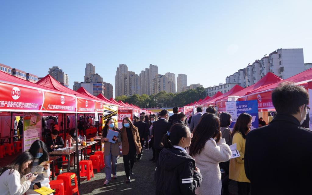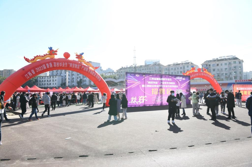 秋意正浓求职季,精准对接助扬帆。为贯彻落实省委、省政府关于引导和鼓励毕业生留赣就业的决策部署,进一步推动我校2022届毕业生就业工作,11月24日上午,我校在学校田径场成功举办江西省2022届高校毕业生“商贸物流”产业链专场招聘会暨江西财经职业学院2022届毕业生秋季就业招聘会。省就业创业服务中心副主任陈学军,公共服务处副处长安光,义乌市人才管理服务中心主任吴群伟,副主任骆旭伟,科长鲍腾飞,党委副书记、校长刘彪文,党委副书记、常务副校长何先应,党委委员、纪委书记阙沪平,党委委员邱家明、刘超等领导莅临现场指导,招就处全体同志、各二级学院书记和部分班主任参加了招聘会。