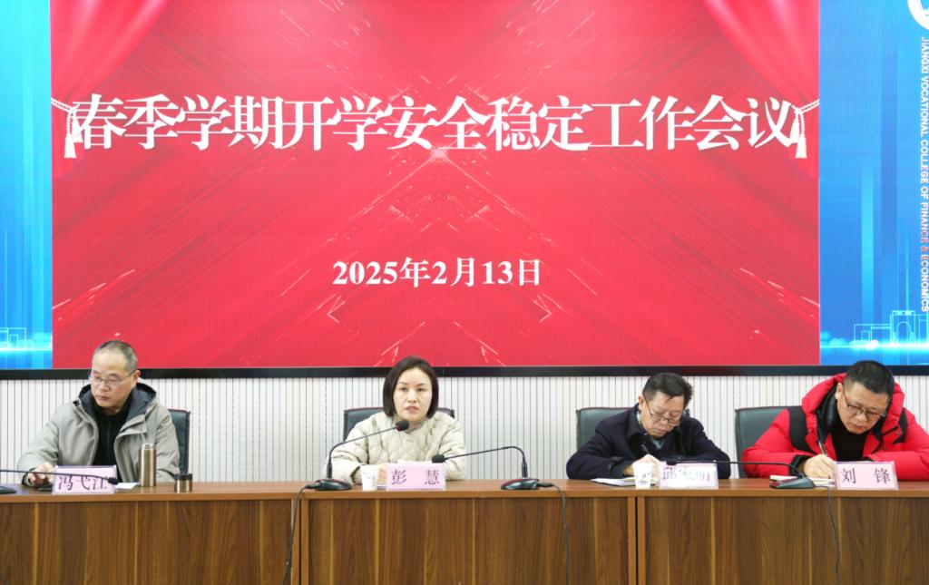 2月13日上午,我校在浔阳校区综合楼七楼报告厅召开2025年春季开学安全稳定工作会议,会议由校党委副书记、校长彭慧主持,全体党委班子成员出席,各二级学院、各部门主要负责人参加。