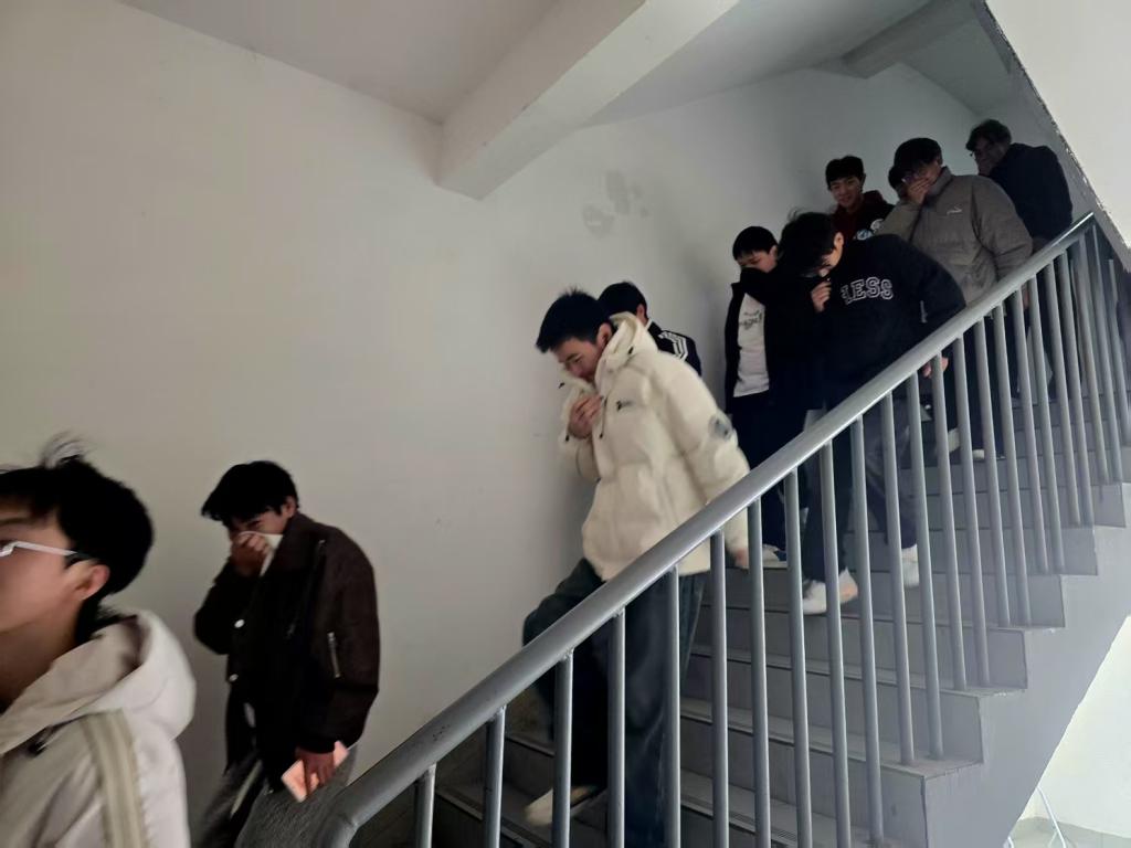演练模拟校园学生宿舍发生火灾,师生进行紧急疏散。演练前消防救援大队任教官讲解了疏散演练的注意事项和疏散手势,然后宣布演练开始。随着学生宿舍楼区域广播及声光响起,学生们迅速走出宿舍,用湿毛巾或衣物捂住口鼻,沿着疏散指示标识箭头指引方向,保持低姿弯腰前行,快速有序地向安全地带撤离,整个过程紧张而有序。演练结束后,任教官对演练进行了总结,肯定了师生在演练中的表现,并对演练过程中存在的不足提出了改进建议。