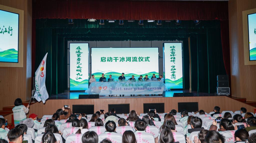 九江市委常委、宣传部部长孙金淼等领导为九江市各区县“河小青”志愿服务队授旗,并共同按下启动键。随着干冰模拟的“清澈河流”在舞台中央缓缓流淌,“‘争当河小青,生态九江行’文明实践我行动”正式启动。