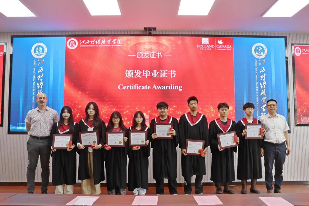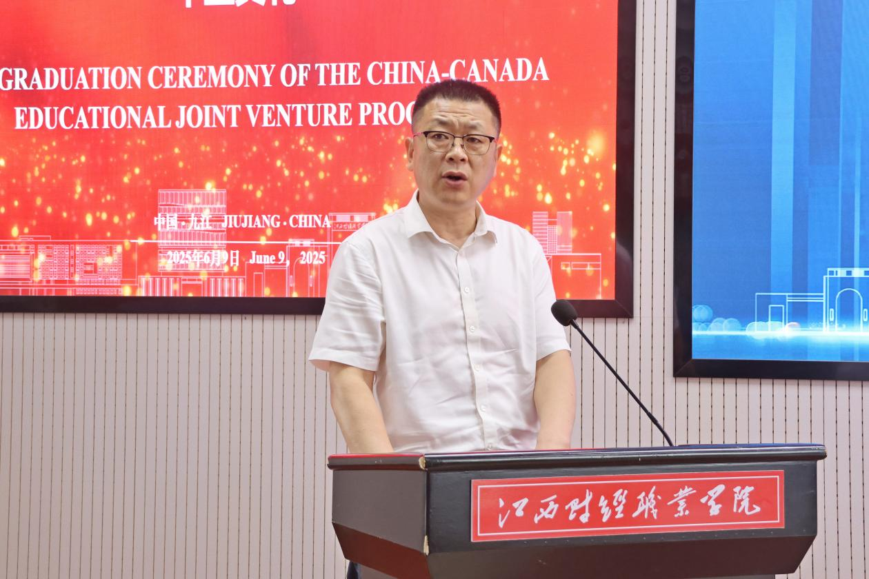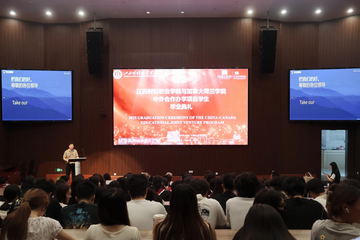 6月9日,我校与加拿大荷兰学院合作办学项目2025届会计专业、计算机网络技术专业毕业典礼分别在我校八里湖校区行政楼和浔阳校区综合楼举行。加拿大荷兰学院教务长Craig Dauphinee、国际合作及亚太事务主任邱洪涛先生,我校党委委员、副校长冯弋江、党委委员刘锋出席典礼,会计学院、信息工程学院、工商管理学院、国际教育学院等部门负责人、中外教师代表及全体合作班级毕业生参加了毕业典礼。典礼由国际教育学院党政办公室主任王禾传主持。