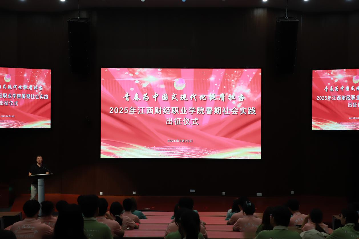 长风破浪正当时,青春扬帆赴山海。为深入学习贯彻习近平新时代中国特色社会主义思想,引导青年学生在实践中“受教育、长才干、作贡献”,6月26日,我校2025年“青春为中国式现代化挺膺担当”暑期社会实践活动出征仪式在八里湖校区行政楼二号报告厅举行。校党委副书记金小军出席,各学院党总支、团总支负责同志,实践队指导教师及团队成员共200余人参加。仪式由校团委负责人廖国臣主持。