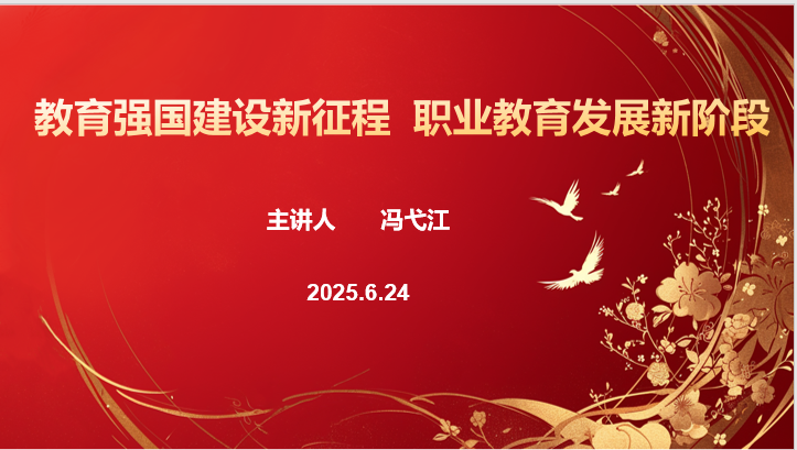 6月30日,校党委委员、副校长冯弋江以“教育强国建设新征程 职业教育发展新阶段”为题讲授了一堂党课,深入解读教育强国建设的重大意义与实践要求?;峒蒲г旱痴嘧?、工商管理学院党政班子及党员教师代表、基础教育学院全体党员教师参加会议。