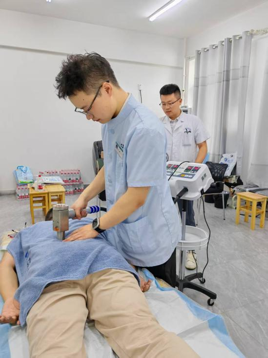 在中医养生体验区,专家们为教职工提供了肩颈推拿、耳穴压豆、拔罐、刮痧等项目。通过专业手法和传统疗法,有效缓解了教师们因久站、久坐及长期伏案工作带来的肌肉紧张、疲劳不适等问题,尤其针对肩颈腰痛、睡眠障碍、湿气重等常见亚健康状态进行了现场调理。