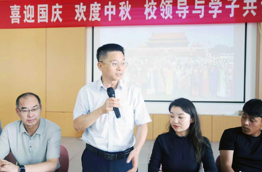 李松志代表学校向全体同学致以节日的诚挚问候与美好祝福。他回顾了新中国发展取得的辉煌成就,阐释了中秋文化所蕴含的团圆意蕴与家国情怀,并勉励同学们要将个人成长与国家发展紧密结合,珍惜在校时光,勤奋学习、锤炼品格、提升本领,努力成长为可堪大用、能担重任的时代新人,为实现中华民族伟大复兴贡献青春力量。