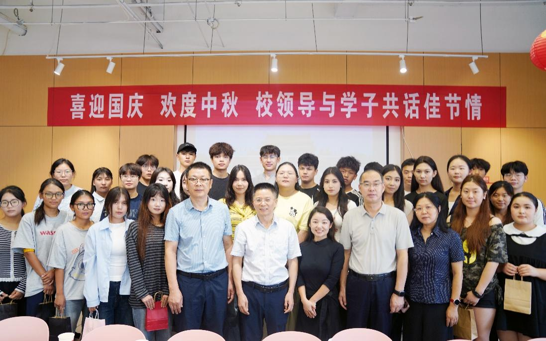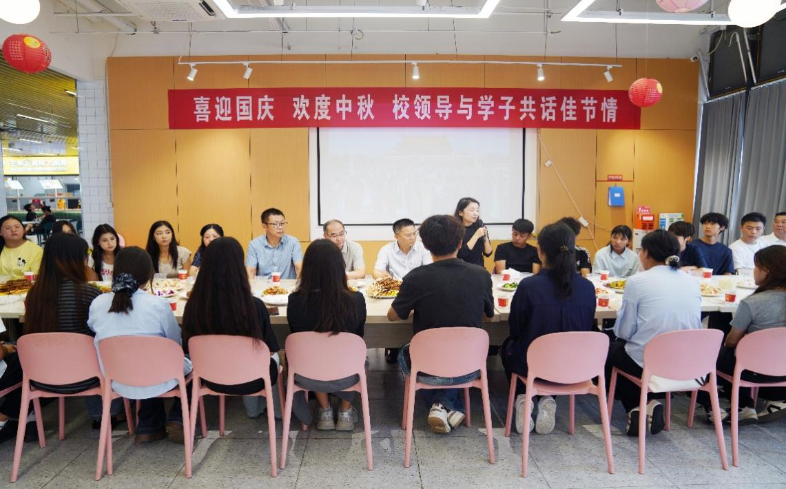 时维金秋,双节同至。10月1日中午,我?!跋灿?欢度中秋 校领导与学子共话佳节情”主题活动在八里湖校区北区食堂温馨举行。校党委书记李松志、党委副书记金小军、党委委员刘锋等亲临现场,与来自各二级学院的各民族学生代表欢聚一堂,畅谈交流,共话中华一家亲,现场洋溢着浓厚家国情怀与节日温馨。