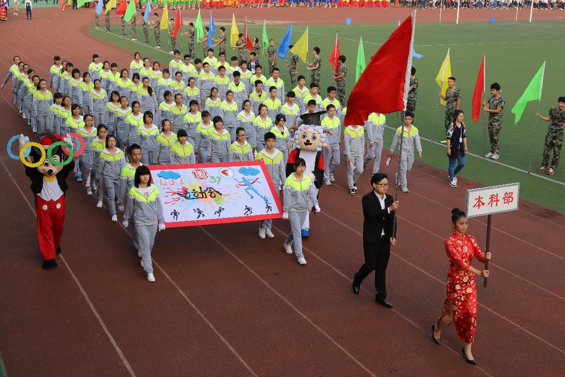 伴随着慷慨激昂的运动员进行曲,由国旗队、校旗队组成的先导队,踏着铿锵的节奏、迈着整齐的步伐走在各方阵队伍的前列,紧随其后的各二级学院方阵依次登场,向我们展示了别样的精彩和特色,成为主席台前一道亮丽的风景线。观众席上,大家为各二级学院的精彩亮相喝彩,也为所有即将参赛的运动员们加油鼓气……