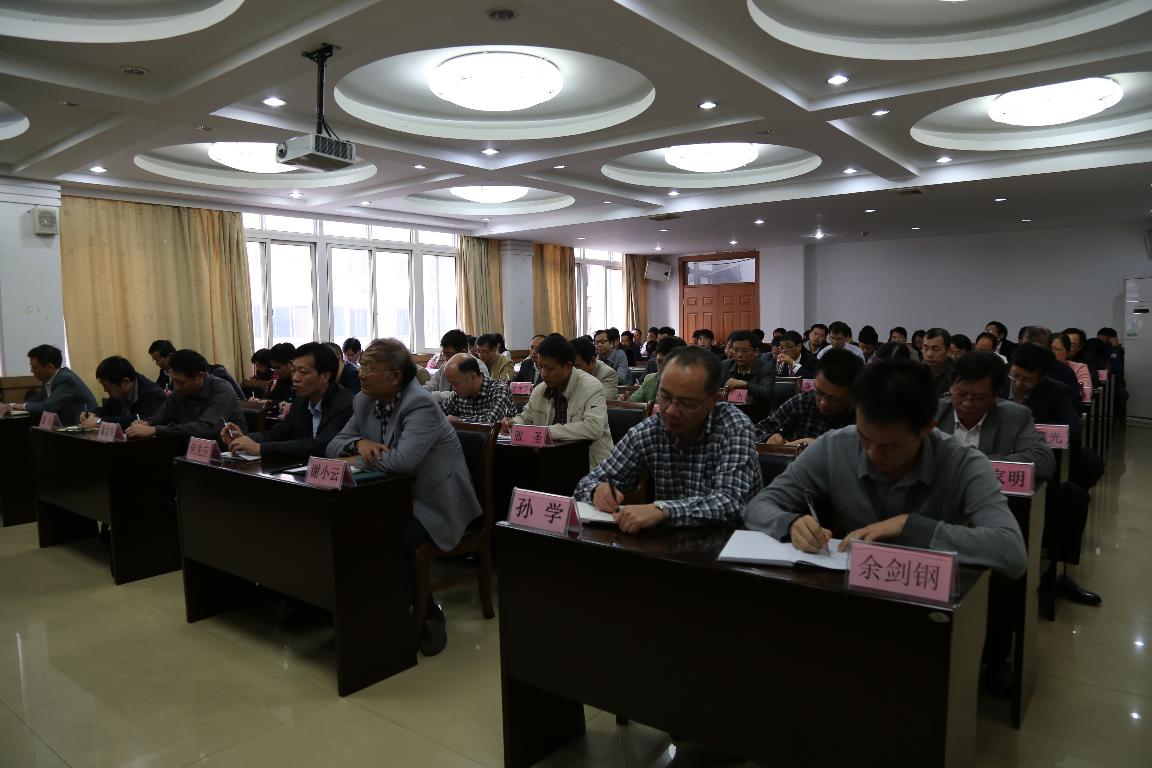 10月28日下午,财政厅党组成员、省纪委驻厅纪检组组长胡彦斌到我校与党委班子成员进行廉政集体谈话,校领导何桑、何先应、谢小云、蔡宜华、孙学、曹锐、张成斌等出席?;嵋橛尚5澄榧呛紊V鞒?。学校全体中层干部参加会议。