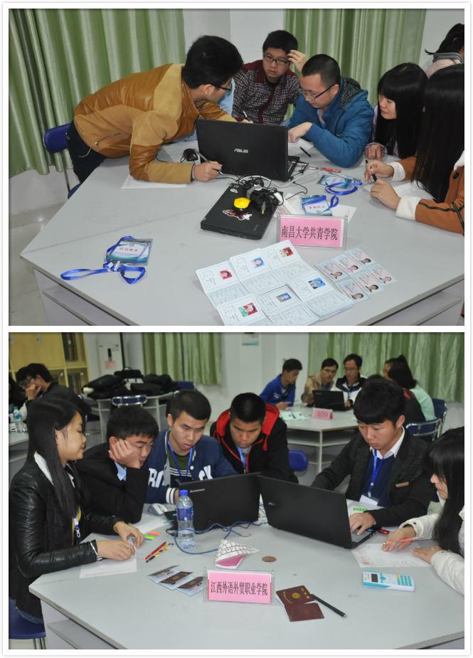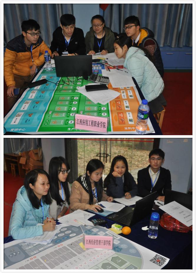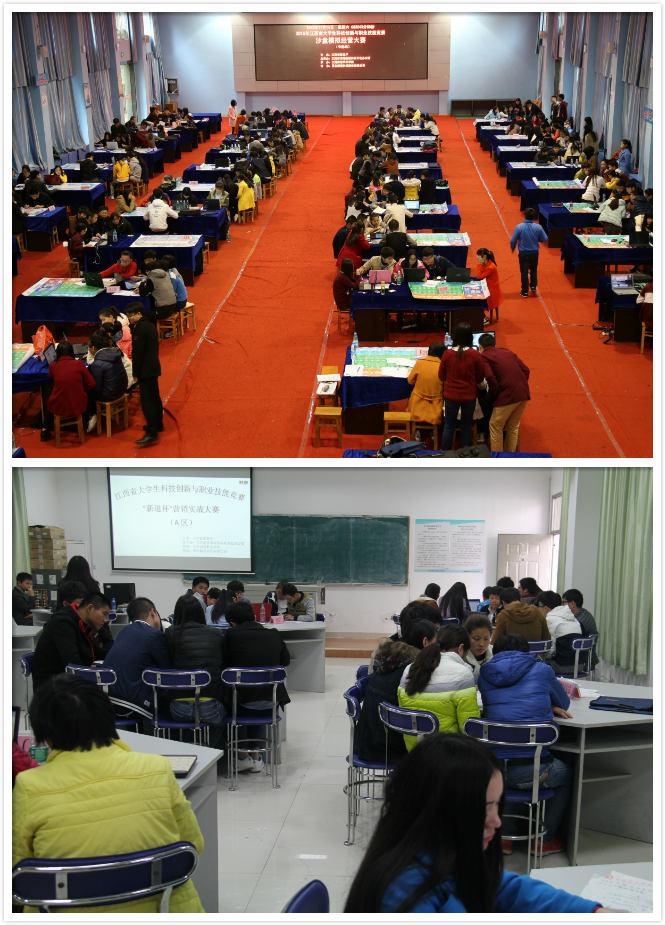 本届沙盘模拟经营与市场营销实战大赛,共吸引了江西应用工程职业学院、江西经济管理干部学院、江西外语外贸职业学院、南昌大学共青学院等25所高校的68支代表队参加,参赛学生364名。两项赛事场地分别设在我校羽毛球馆与东区教学楼。用友公司卢燕青、刘常芬和工商管理学院曹玉敏、易娇艳、聂群华、厉宗萍、唐朝莉、周晟成、钟思等老师分别担任了赛事期间赛场的组织工作。