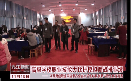 本次竞赛吸引了九江电视台等媒体的关注,工商管理学院副院长武丹副教授及本校参赛队员分别接受了采访。赛事新闻于11月15日晚在九江一套九江新闻中播出。