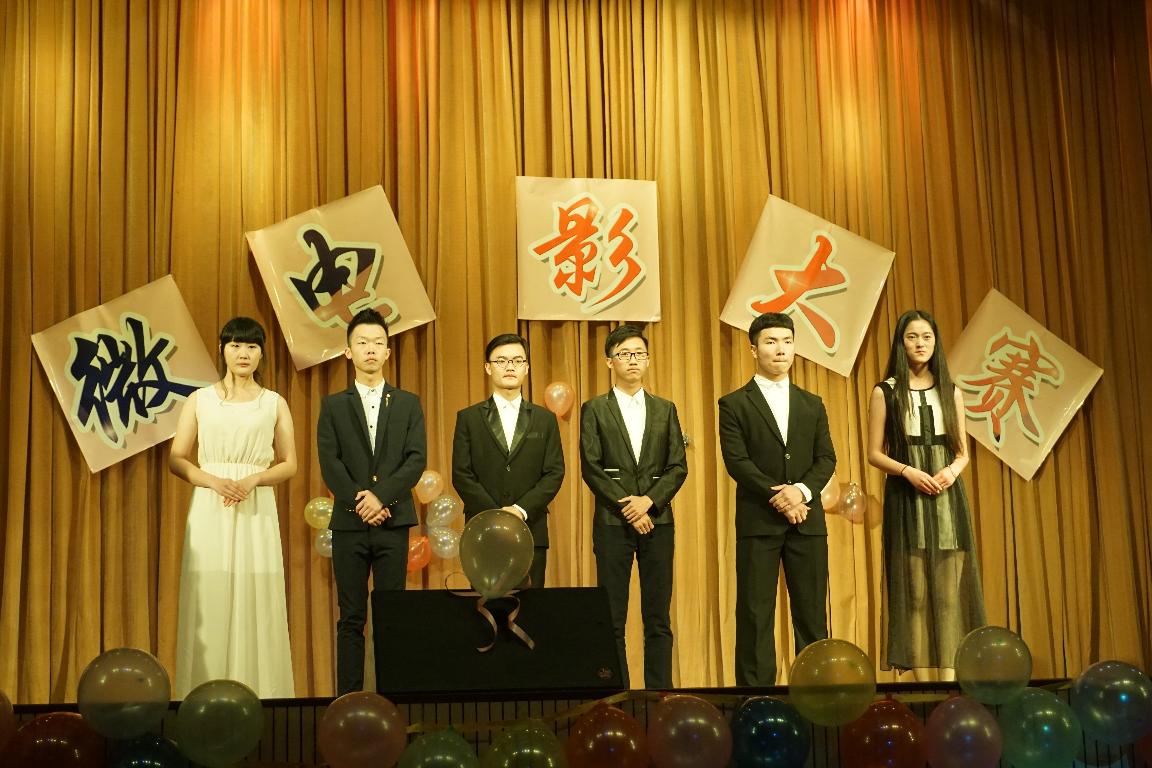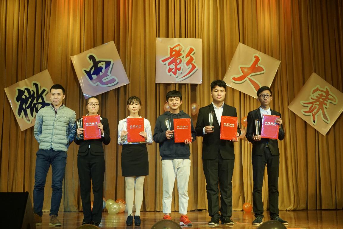 经过两个小时的激烈角逐,“风之影”团队的作品《我的学霸女友》以其细致的规划、缜密的思维和出色的口才获得一等奖;“筑梦者”、“微团队”以其优异的表现获二等奖;“十八岁的小孩”、“梦之队”、“颜值爆表组”获三等奖。肖凯等五名同学分获最佳男演员、最佳女演员、最佳编剧奖、最佳摄影奖、最佳导演奖。评委老师为获奖的参赛选手一一颁奖并与获奖选手合影留念。