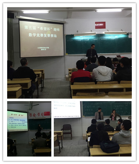 初赛于11月25日拉开序幕,以笔试形式进行,各班参赛队的三名选手在半小时内共同完成四十五道趣味数学题,考核他们的分析、推理、逻辑思维、空间想象能力,尤其是团队合作能力。最后,2015级计算机应用(1)班等十八个班级参赛队进入复赛。