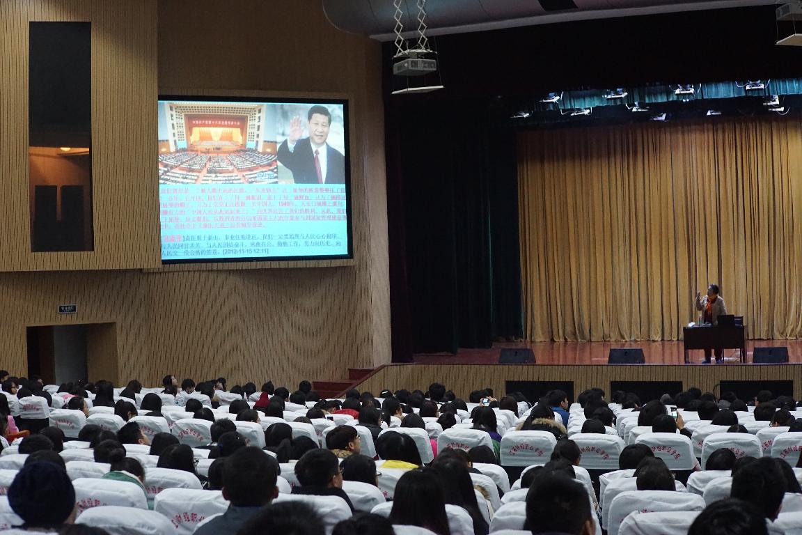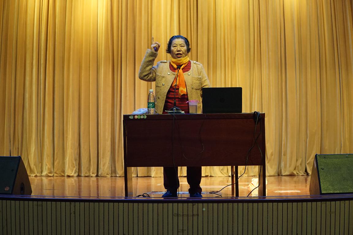 12月9日晚,浙江师范大学退休教授蔡其容女士来到我校英才交流中心,为我校大学生作抗战主题的爱国主义教育讲座。校团委副书记李智、团委老师及学生代表500多人一同聆听了讲座。