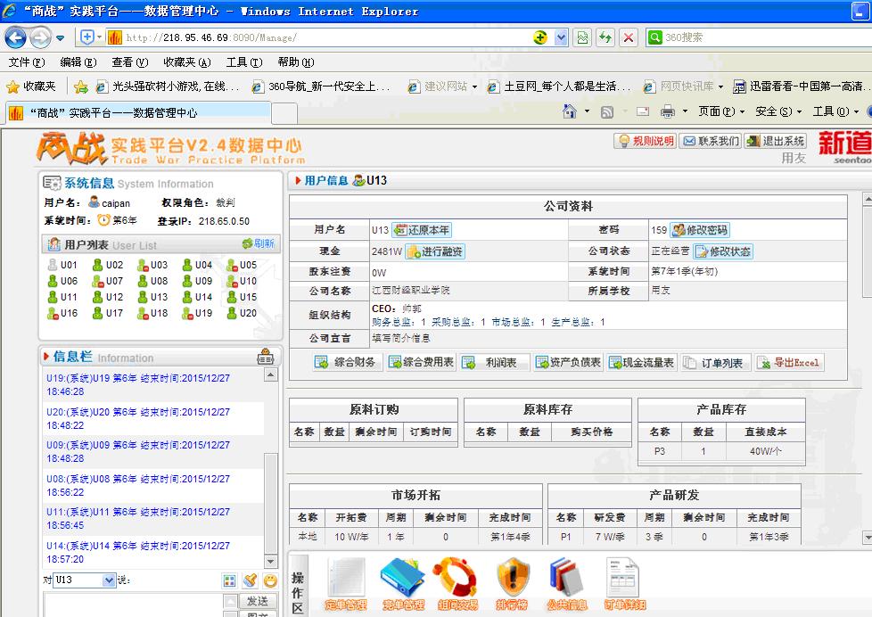 作为大学生科技创新与职业技能竞赛现场赛事的重要补充,以网络为媒介的网赛平台有着不受时空限制,更具灵活性的优点。目前,江西财经大学开发运行的以本科院校为主的科创网赛平台,开创1年,吸引了全国大致100余所本专科院校,取得很好的社会效应。借鉴江西财经大学良好的网赛运行模式,我校工商管理学院依托江西用友公司的技术支持,与学校现教中心密切配合,在前期网络测试试点的基础上,经过1个多月的紧张筹备,完成了我校大学生科技创新与职业技能竞赛网赛平台---江西财院科创网赛平台的第一期开发工作。其中平台首个网赛项目--ERP项目,于2015年12月27日正式上线投入运行。
