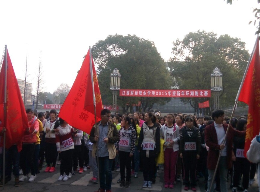 为了丰富校园体育文化生活,迎接2016年新年的到来,基础课教学部于2015年12月26日上午8:30举办了“迎新年环湖跑比赛”。各分院代表队在老师的带领下按照规定路线完成了比赛。