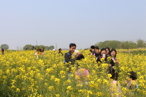 彭泽县棉船镇是长江中下游的冲积洲,四面环水,地势平坦,土地肥沃,非常适合棉花及油菜等农业经济作物的生长。参加考察活动的教职工自踏上棉船镇的土地开始,就被棉船镇的新式居民住房、整洁的乡村环境卫生以及道路两旁的景色所吸引。特别是进入到棉船镇油菜生产基地考察时,教职工对近5万亩盛开的油菜花赞不绝口,他们下到田间,或观察油菜花的形状和颜色,了解油菜的生长状况;或三五成群伏身花海,合影留念,在充分享受自然美景的同时,也感受到了当地农业生产的新气象。