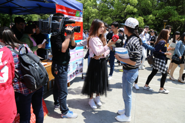 4月19日中午,我校爱心社在南区食堂前举行了一场“汇聚爱心力量 帮助残疾同学吴晓玲”的爱心义卖活动。现场气氛热烈,爱心洋溢。江西电视台记者进行了采访报道。