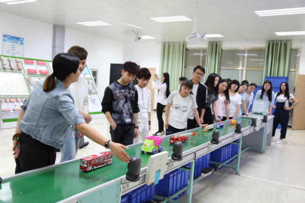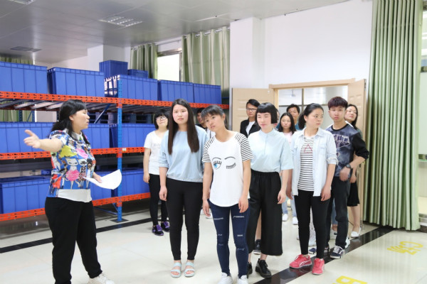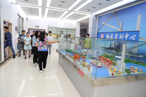 在物流管理实训中心大厅,讲解老师通过沙盘向学生介绍了九江的物流布局与发展。在仓储与配送实训室,我校物流管理专业学生演示了从入库作业到出库作业、配送作业等项目。在运输调度实训室,讲解老师向学生介绍了大型物流企业远程实景互动教学平台,以及自动化的物流运输流水线,并且让学生体验了模拟驾驶室的操作。