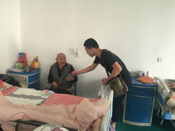“爷爷,这份是您的,您拿好了。”志愿者张懿将手上的牛奶、水果递给91岁高龄的李爷爷,老人颤着手接了过来,场面十分温馨。志愿者们亲切的与老人们拉家常,了解他们的生活、食宿情况,倾听老人们的心声。老人们都说“今天看到你们这些年轻人,我们这些老人都很激动,我们行动不便,很少去外面活动,在敬老院的日子也很无聊,很孤独, 你们能来这儿陪我们聊聊天,我们很开心?!?/span>