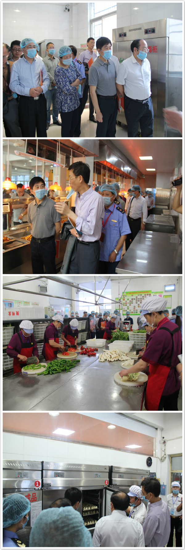 近日,省食品药品监督管理局副局长上官新晨、省食品药品监督管理局餐饮食品监督处处长鲁军带领全省各级食品药品监督管理局的餐饮食品监督管理干部二十余人来我校南区食堂参观考察,副校长张成斌、后勤处处长张东海、副处长肖斌、南区食堂经理胡维汉等相关负责人热情接待了考察团一行。
