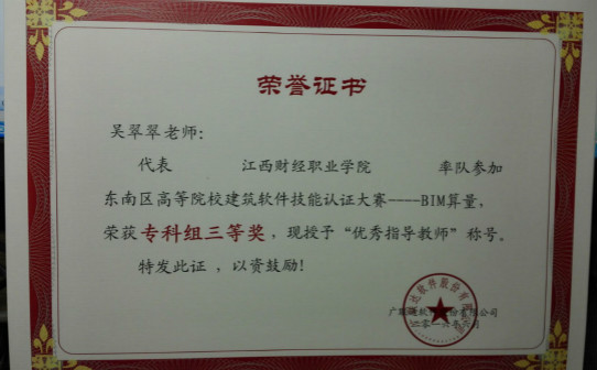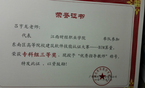 我校建筑工程学院2014级工程造价专业6位同学在吕亨龙和吴翠翠老师的指导下,在比赛中合力协作,发挥出色,取得了专科组综合三等奖。6位学生的技能成绩均在80分以上,相应获得基础技能等级证书,其中14级工程造价三班的刘小东同学技能成绩在90分以上,获得熟手级技能认证证书。
