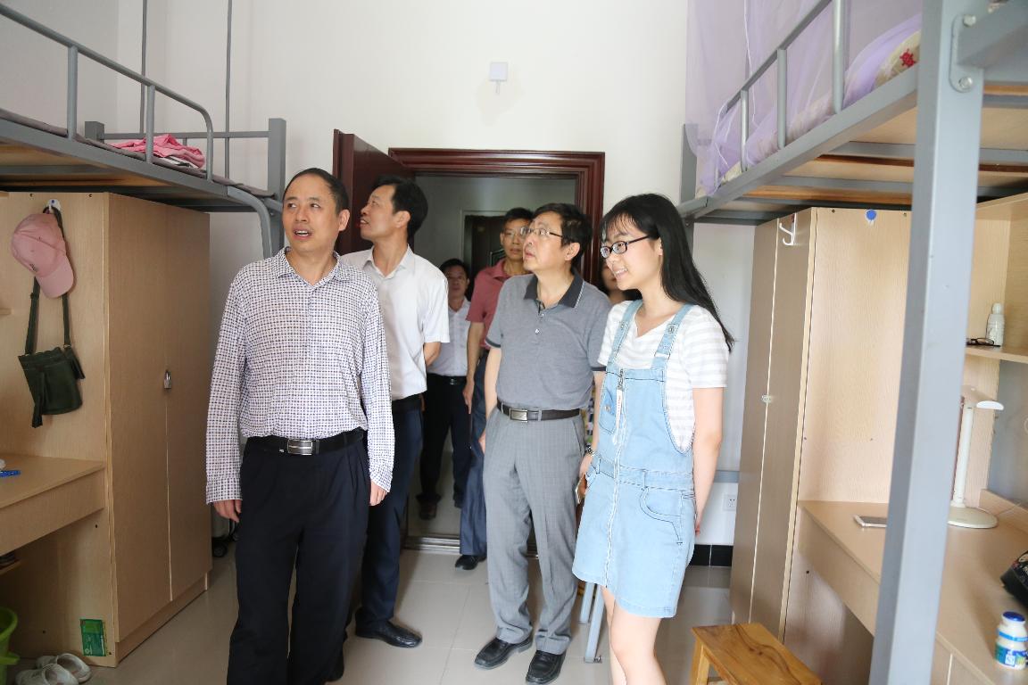 9月3日下午,校领导林火平、何先应、曹锐、张成斌和相关部门负责人走访迎新现场,了解我校2016级新生入学报到情况,并深入学生寝室亲切看望入学新生。