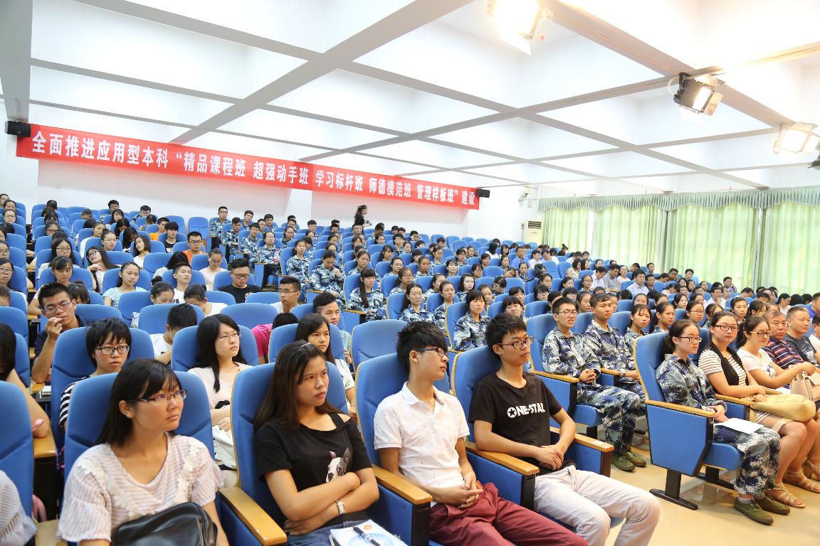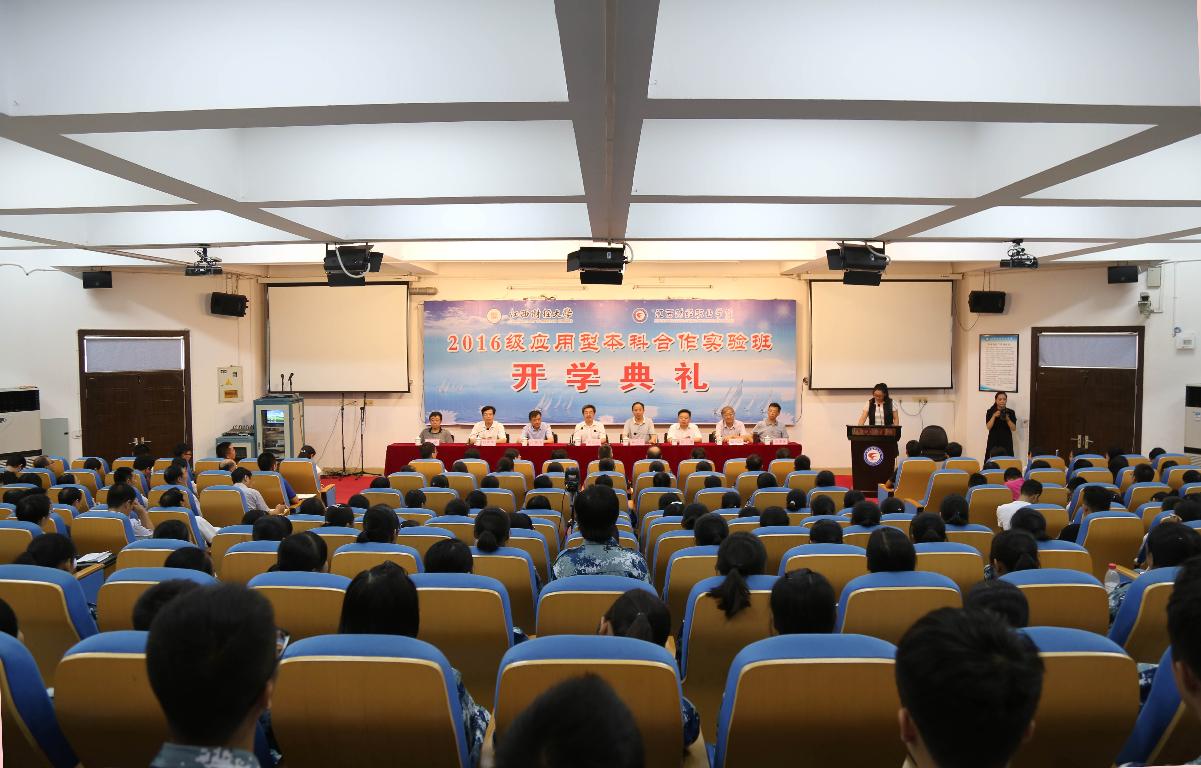 江西财经大学教务处处长许基南、会计学院副院长曹玉珊;我校领导谢小云、曹锐、张成斌;两校相关部门负责人,教师代表、应用本科班老生代表和2016级新生一同参加了开学典礼。