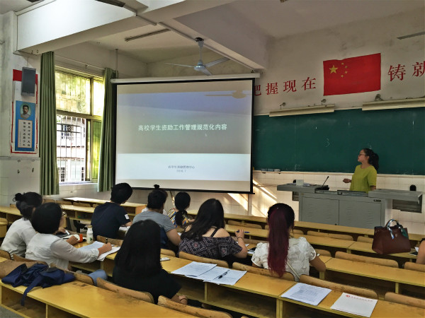 2016年9月13日下午,我校学生资助工作办公室负责人桑丽飞,在教学楼107对各二级学院、国际教育中心负责学生资助工作的老师进行培训,传达了8月31日参加的全省高校学生资助工作会议精神,对高校国家奖助学金政策进行了详细解读,对高校学生资助工作规范化管理内容进行了全面分析。