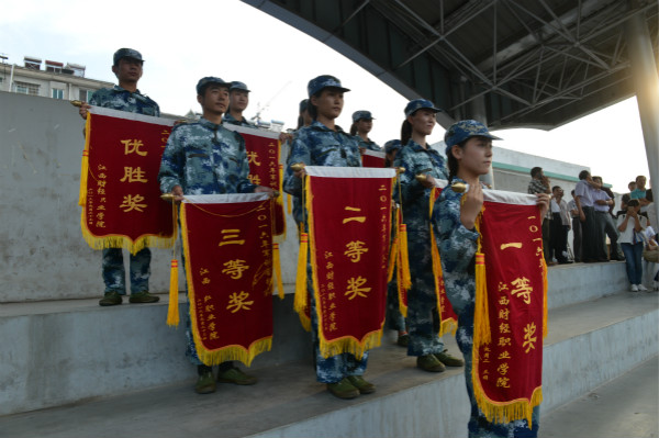 阅兵式后,林火平代表学校向中国人民解放军空军某部赠送了锦旗,感谢部队对我校军训工作的大力支持。校领导和部队首长还为军训优胜队伍颁奖。