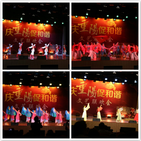 下午3点整,此次重阳节“庆祝重阳节文艺联欢会”在学院英才交流中心举行。参加本次演出的有:我校老同志表演队、九江市庐南社区老年表演队、九江市湖滨社区老年艺术团以及我校青年学生表演队,他们以“歌颂党、歌颂祖国,体现社会主义正能量”为主题,以“歌、舞、朗诵”为主要形式,先后表演了20个精彩节目,使得我校参加观看的离退休老同志和部分青年学生以及参演单位的老年朋友赞不绝口。